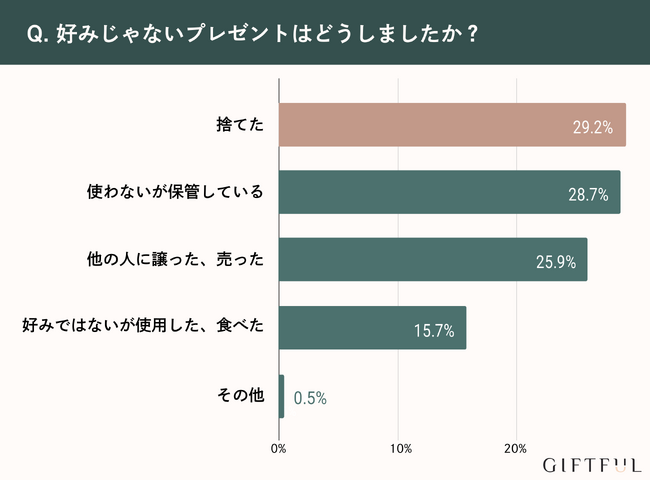 3人に1人以上が直近1年間で“好みじゃないギフト”をもらった経験あり、 その中の29.2%がギフトを廃棄