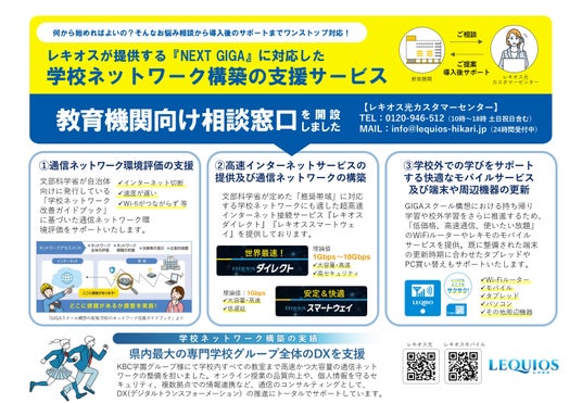この度、通信事業や住環境支援を手掛ける株式会社レキオス(所在地:沖縄県那覇市、代表取締役:宜保文雄)は、文部科学省・総務省・デジタル庁による「学校のネットワークの改善に向けた取組について(要請)」を受け、NEXT GIGAに対応した学校ネットワーク構築の支援サービス(以下「本サービス」)※1を提供します。