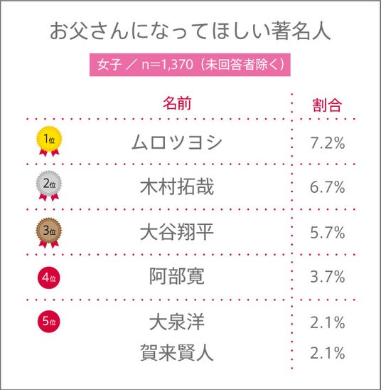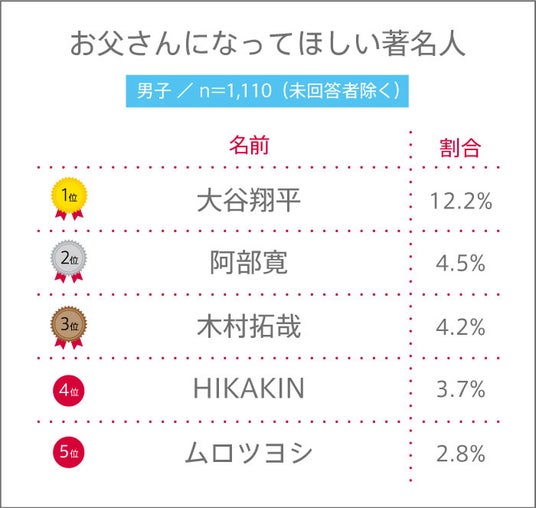 男子の1位は、あの世界的メジャーリーガー!女子の1位は、父親役としてさまざまな作品に出演しているあの俳優!