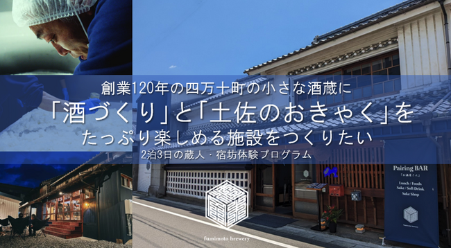 fumimoto brewery(文本酒造株式会社、本社:高知県高岡郡四万十町)は、READYFOR、四国銀行、高知新聞社が連携した高知県特化型クラウドファンディング「EINEE高知」を活用して、街の誇りだと思っていただける酒蔵を目指すとともに、酒蔵を通じて新たな賑わいを作り出し人々が連鎖し、笑顔と活気があふれる街づくりに挑戦します。ぜひ皆様のご参加ご支援を、どうかよろしくお願いいたします。https://readyfor.jp/projects/fumimoto