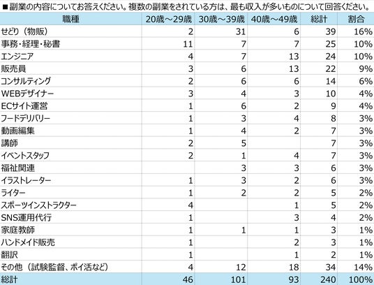 副業をしている20歳~49歳の一般の男女(以下「一般」)計240名(男性137名、女性103名)