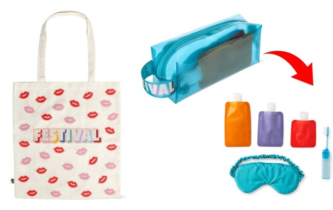 フェスに参加するなら“FESTIVAL”をさらに主張して!キスマークがいっぱいのバッグとポーチ付きトラベルセット