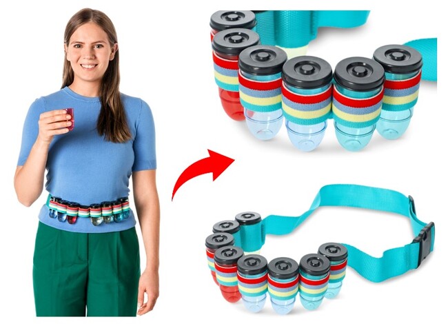 このベルトを着ければあら不思議、みんなが自然と寄ってくる。なぜかって?8個のショットを装着しているから!飲んで飲んで飲みまくろう!さぁ、「スコール!」(デンマーク語で「乾杯!」)