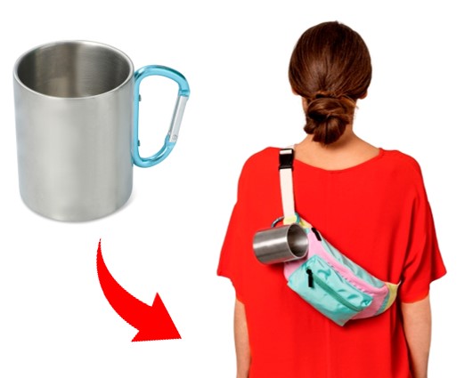 こちらはマグカップをバッグにつけて持ち運べるカラビナ付き