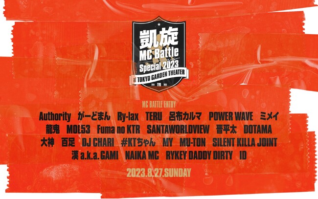 今回、当社が配信プラットフォーム開発と公式PPV配信を担当する『凱旋MC battle Special2023』は、MCとして活動する怨念JAP主催によるMCバトルイベントです。2017年にスタートした年に一度の特別なMCバトルの祭典「凱旋MC Battle」ですが、今大会は初の劇場型ホールとなる東京ガーデンシアターで開催。MCバトルには欠かせない呂布カルマや晋平太、次世代を担うAuthorityや#KTちゃんなど、総勢24人の豪華な顔ぶれが大集結しています。