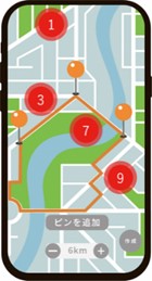 パトロールする距離を指定し、必ず通過する必要がある地点を選ぶだけで、最適なパトロール経路が自動で作成されます。指定した地点を通りつつ、犯罪の発生が予測される箇所を指定された距離内でなるだけ通るような経路が作成されるため、より犯罪抑止効果の高いパトロールが可能になります。