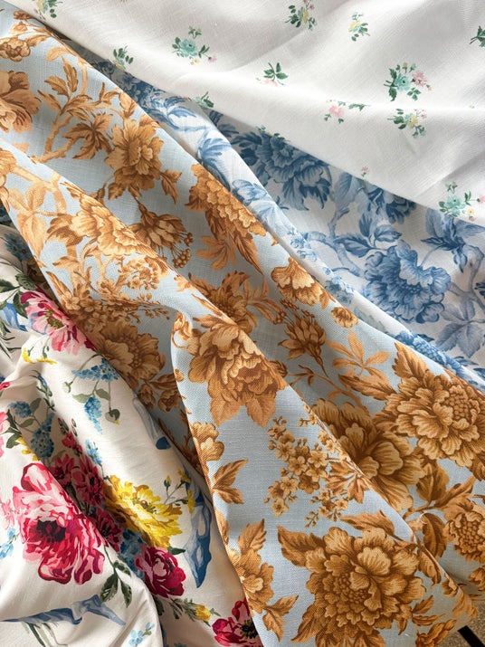 ガーデン・ブルームスは、咲き誇る菊、ポピー、ブルーベル、デイジー、そして小さなバラのつぼみを織り交ぜた、華やかな花咲き乱れるデザインです。ロールスクリーン、ローマンシェード、カーテンとして展開されるこのパターンは、時代を超えたリバティの保存作品から着想を得て、奔放な花々の独創的な構図へと昇華しています。フェザリントン家のどの部屋にもふさわしいプリントです。
