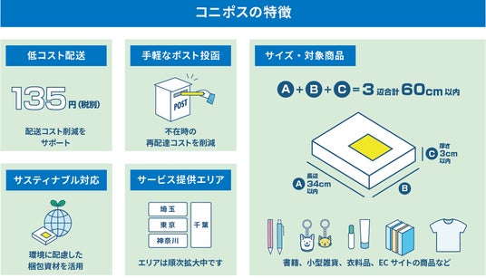 「コニポス」は、小型商品向けのポスト投函型配送サービスです。