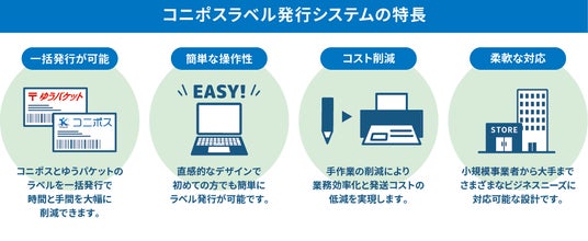 「コニポスラベル発行システム」は、全国の顧客様へ効率的に発送したい場合にも役立つ仕組みを備えています。