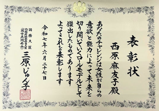 株式会社ベホマル(本社:滋賀県草津市、代表取締役:西原麻友子)は、代表の西原麻友子が内閣府「令和7年度女性のチャレンジ賞」を受賞したことをお知らせいたします。
