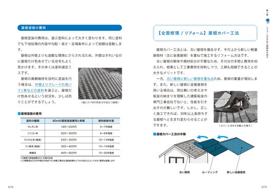 屋根材の種類や構造、工事方法などの基礎知識から、業者の選び方、工事費用の相場まで、屋根リフォームの不安はこの1冊で解決します。