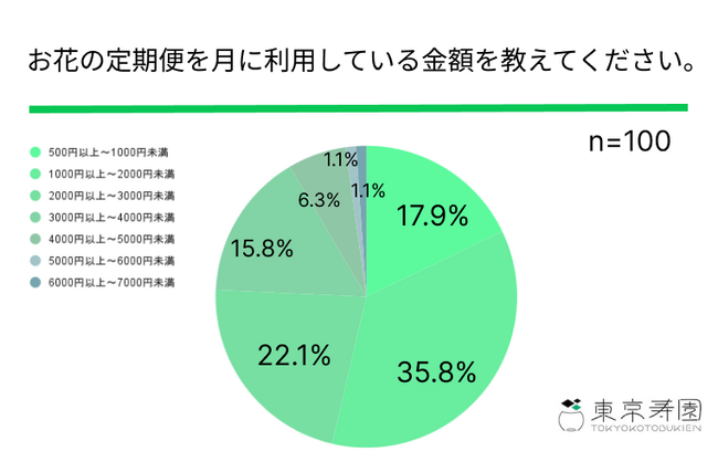 「お花の定期便」を月に利用している金額は1000円以上~2000円未満が35.8%