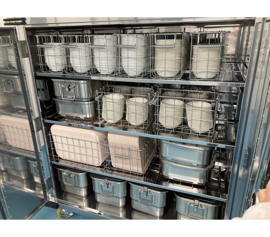 学校給食において使われる食器や食缶は、毎日コンテナやカートと呼ばれる台車に積載して学校へ運ばれ、クラスへ届けられます。給食センターの計画にあたっては、学校ごとに必要なコンテナの台数を算出することが求められます。その際にコンテナの積載検討を行う必要があり、人力での検討には非常に時間を要していました。