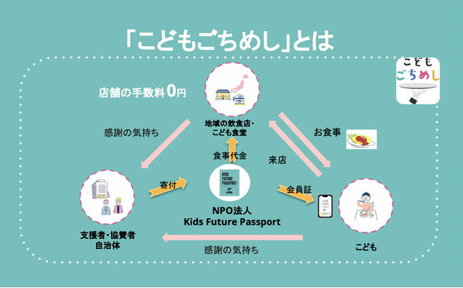 また、飲食店は登録料やシステム料など手数料なしで導入でき、売上を向上できるため、こどもの食事が地域活性化につながります。