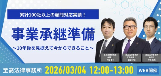 本セミナーでは、累計100社以上の弊所のサポート実績をもとに、事業承継トラブルを未然に防ぎ、次世代へ確実に会社を受け継ぐための勘所をお伝えします。