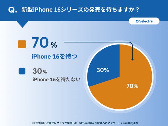 - 70%が「iPhone 16の発売を待ってから購入する」 と回答、型落ちモデルの値下げを期待する購入予定者が多数