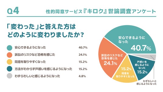 回答内容が分散しており、「安心できるようになった」40.7%に対して「訴訟のリスクなど恐怖を感じた」24.1%と立場によって分かれる結果となっている。