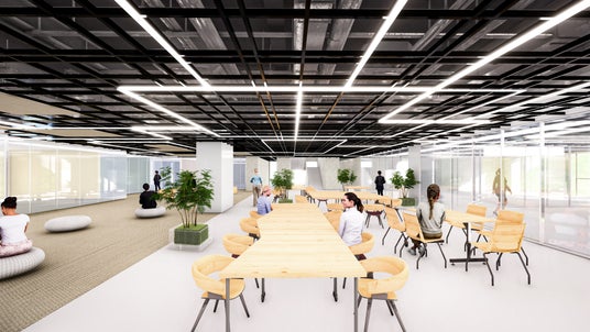 また大学施設としては情報社会学部の各種教室を中心としながら、情報デザイン学科生向けの電子工作室やデザイン工房、また、現代社会学科生向けの大規模ワークショップが可能な120人ワークショップルーム、さらにスタジオや、学部を超えて学生の交流を促進するコラボレーションラウンジを整備する予定です。