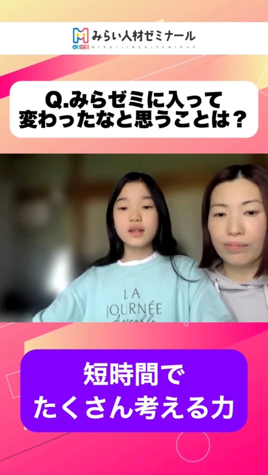 みらい人材ゼミナール(みらゼミ)は2025年7月31日及び8月1日に公式YouTubeチャンネルと公式Instagramにおいて、塾生・保護者インタビューのショート動画を公開します。