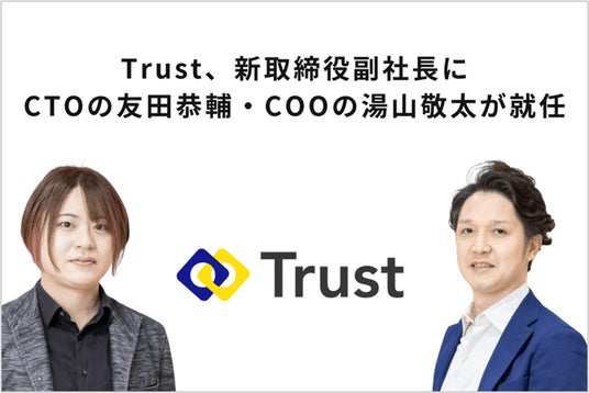 「テクノロジーとコミュニティーで金融の未来を創る」をミッションに掲げるTrust株式会社(本社:東京都中央区、代表取締役CEO 岡田拓郎、以下「Trust」)は、新たに取締役副社長 CTOとして友田恭輔、取締役副社長 COOとして湯山敬太が選任され、2025年4月24日付けで就任したことをお知らせします。