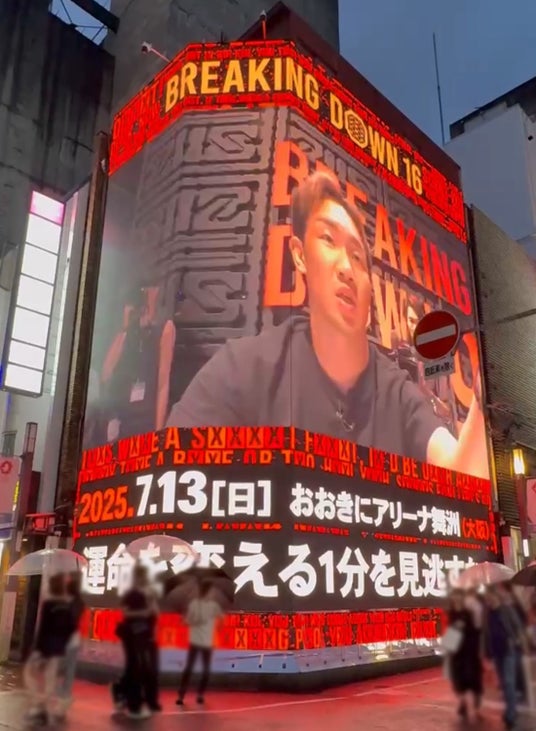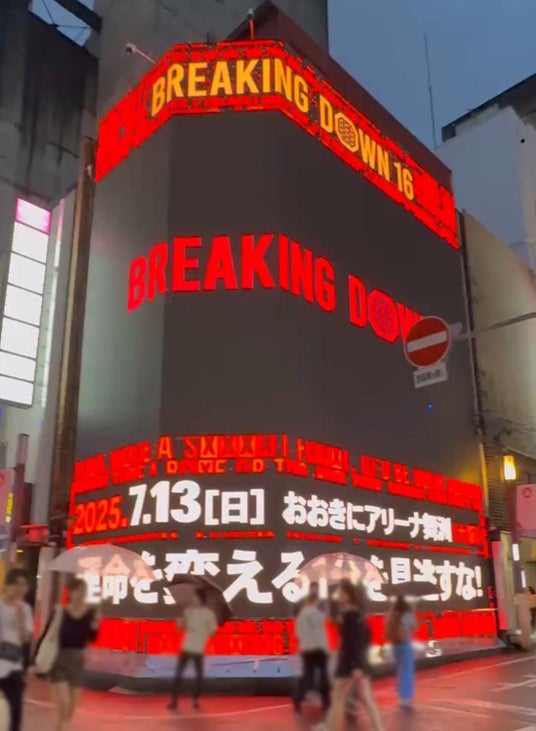 今回放映されている映像では、7月13日に開催される「BreakingDown16」の告知を中心に、出演選手の情報やイベントの雰囲気をダイナミックに展開。格闘界のみならずSNSでも高い影響力を持つ出演者による発信により、現地の臨場感とオンラインの拡散力が融合したプロモーションとなっています。