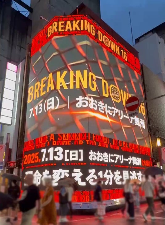 2025年7月13日(日)、人気格闘イベント「BreakingDown16」が大阪・おおきにアリーナ舞洲にて開催されます。これに先立ち、宗右衛門町に設置された大型屋外ビジョン《MONSTER 3D VISION OSAKA》では、大会プロモーション映像の放映を開始いたしました。