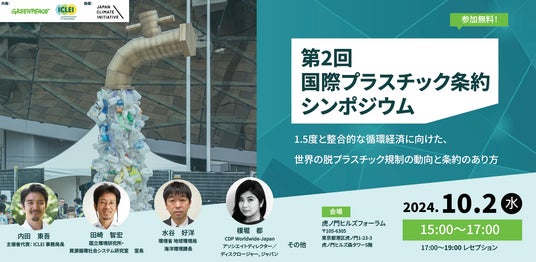 国際環境NGOグリーンピース・ジャパン(東京都港区)は、イクレイ日本(ICLEI:持続可能な都市と地域をめざす自治体協議会)と共催で、10月2日(水)午後3時より、シンポジウム「第2回国際プラスチック条約シンポジウム~1.5度と整合的な循環経済に向けた、世界の脱プラスチック規制の動向と条約のあり方~」を開催します。