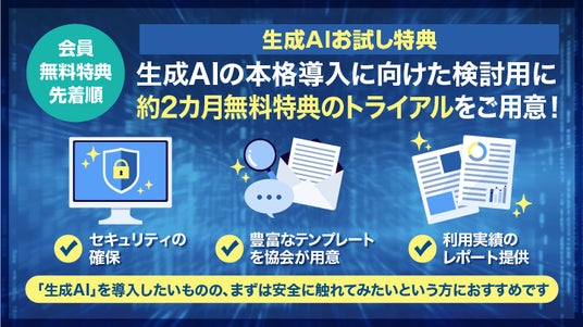 ユーザ協会会員の方向けに、生成AIの本格導入検討用に約2カ月無料特典を用意しました。