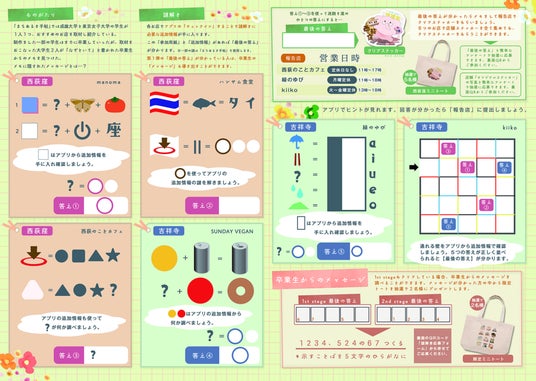 この謎解きイベントは、吉祥寺にある「成蹊大学」の学生と西荻窪にある「東京女子大学」と一緒に制作した「地域の大学生が見つけたまちあるき手帖」をもとに、大学生が紹介した舞台に「なぞときあるき」。参加者には吉祥寺と西荻窪の2つのエリアを店舗を巡り、謎解きにチャレンジしながら物語が進んでいく「まちあるき型謎解きイベント」です。昨年秋に開催し、大好評を得た企画の第2弾です。