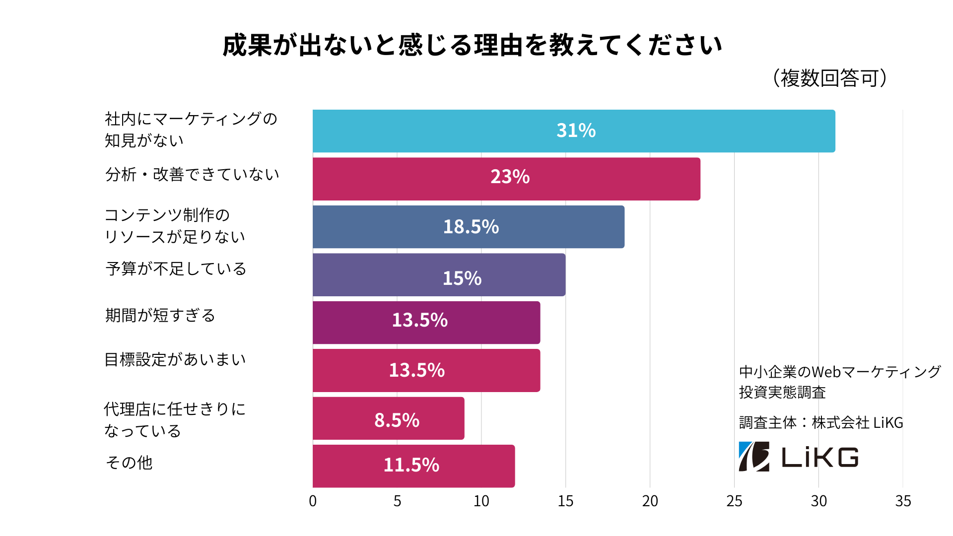 成果が出ない理由は「知見不足」。分析できない・リソース不足が続く