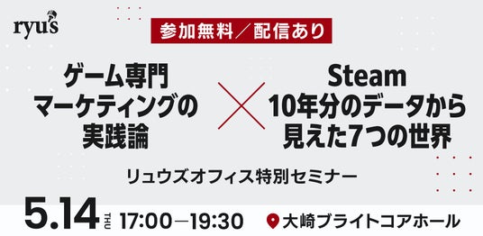『ペルソナ』シリーズからインディーゲームイベント『Indie Live Expo』まで、規模を問わずゲーム専門のマーケティングを手がけてきた株式会社リュウズオフィスが、自社の知見を公開する無料セミナーを開催します。