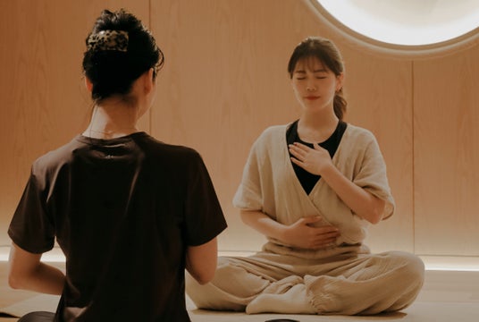 ヨガニードラは「眠りのヨガ」とも呼ばれ、横になったまま深いリラックス状態へと導く瞑想法です。眠っているようで意識は冴えており、心身をリラックスさせていきます。プラーナヤーマは、呼吸を整えて心を落ち着かせる方法。どちらもインストラクターによるガイドと共に行います。