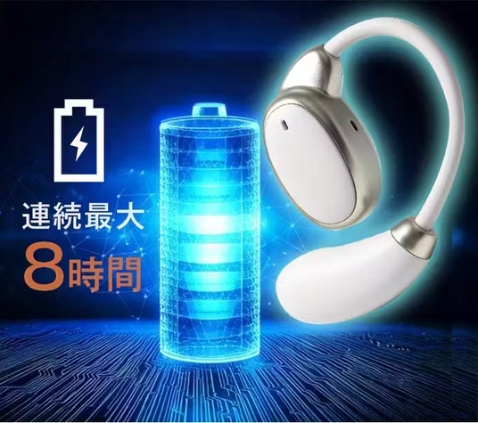 フル充電で最大8時間: 50mAhの小型バッテリーとメーカー独自の省エネ設計により実現