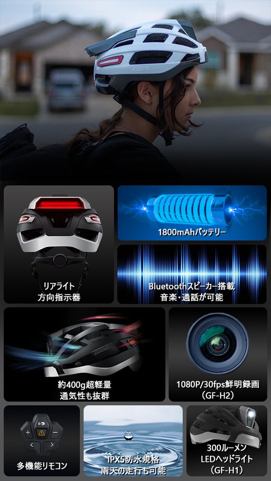 【方向指示器・リモコン操作・IPX5防水・ヘッドライト/カメラ搭載】