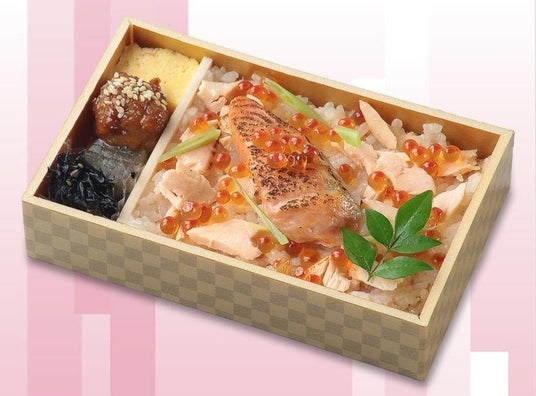 東京ちび弁 鮭いくらみやび人気の炊き込みご飯「鮭めし」の上に、鮭のほぐし身といくらを散りばめ、焼き鮭も載せた、贅沢なお弁当です!