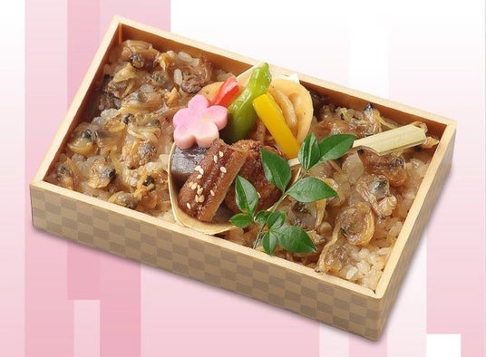 東京ちび弁 深川めし江戸時代、漁師町として栄えていた深川で、漁師が賄めしとして食べていたのが、地元でとれたての貝類の汁をかけた「ぶっかけめし」。一方、大工さんなどお弁当が必要な職人さんのために生まれたのが炊き込みご飯タイプ。みやびオリジナル「深川めしの素」は、神田明神様のお土産としても大人気!そのご飯にあさりをトッピング。