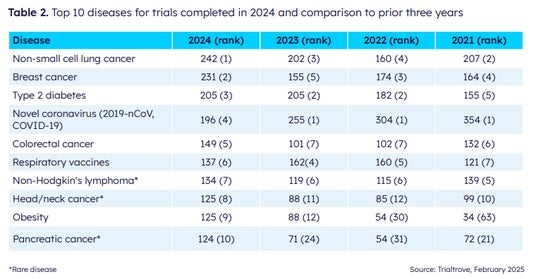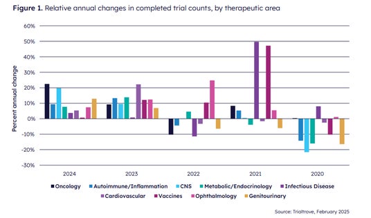 2024年に完了または主要評価項目を達成した業界主導の臨床試験は、過去8年間で最大の成長率を記録。