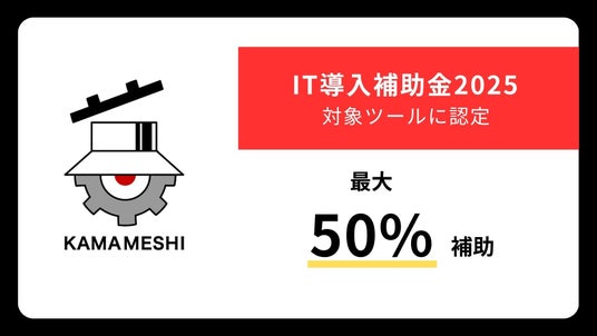 日本製鉄発のスタートアップ株式会社KAMAMESHI(本社:東京都大田区、代表取締役:小林 俊)は、経済産業省が実施する「IT導入補助金2025(以下、IT導入補助金)」の支援対象ITツールとして認定されました。これにより、導入費用の最大50%が補助されます。
