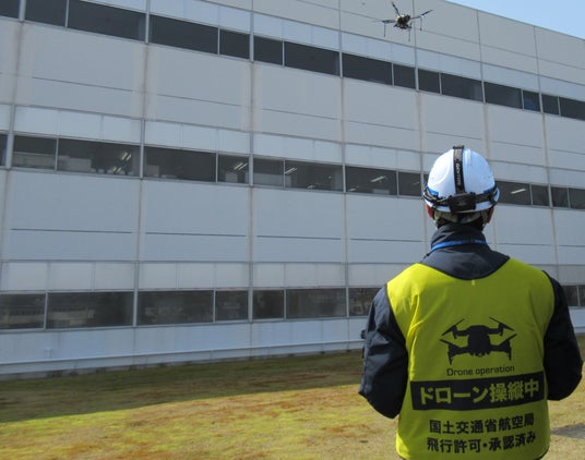 現在のRC造建築物外壁調査は、ひび割れや鉄筋露出などの変状把握は人による目視で行われています。変状の位置や範囲についてメジャー等を用いて図面に書き込んで記録し、事務所に戻ってCADデータとして清書を行っています。高所などで地上から確認しにくい場合は、高所作業車やロープによってアクセスしていますが、作業員の安全確保や調査・記録用具の落下防止のため作業環境が煩雑になっています。労働人口が減少していく傾向にある今、外壁調査業務の効率化・省人化は急務であると言えます。