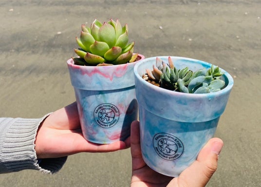 ペットボトルキャップをリサイクルしたフラワーポット