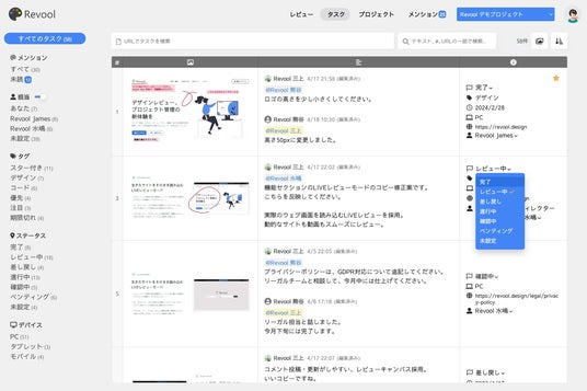 Webデザイン修正指示のタスク進捗がひとめでわかる、ダッシュボード