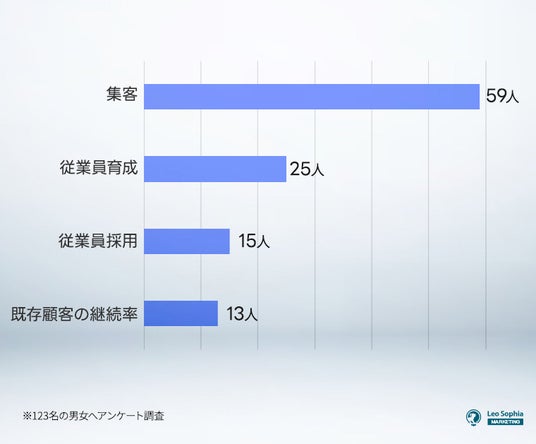 店舗運営における1番の課題は『集客』であり、次いで「従業員育成」や「従業員採用」に課題を感じていることが分かりました。