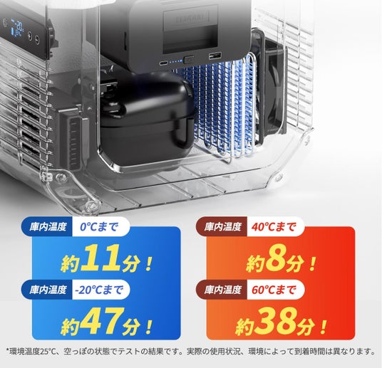 「D18 PRO」は、高品質コンプレッサーを搭載するだけでなく、アルミライナーを採用し、設定温度までの冷却と加熱をより速く行うことができます。環境温度が25℃の場合、冷却は47分で-20℃、11分で0℃に達し、加熱は38分で60℃、8分で40℃に達します。