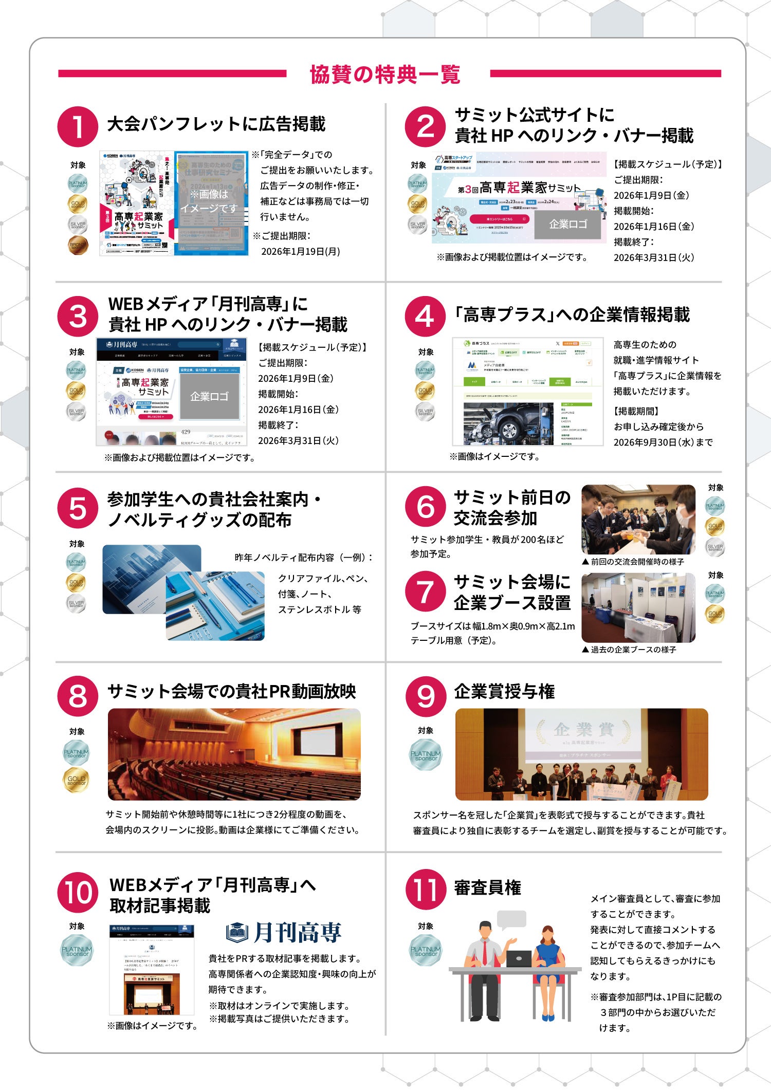 第3回高専起業家サミットでは、協賛企業を募集しています。