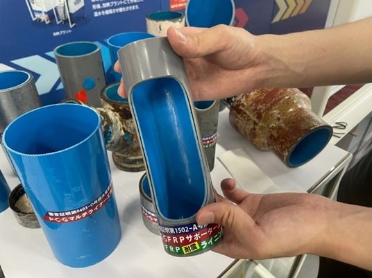 展示内容:FRPライニング工法の施工サンプル、環境負荷削減効果の紹介、マンション・団地での事例解説