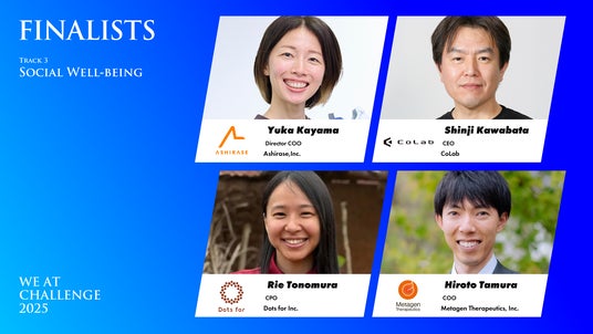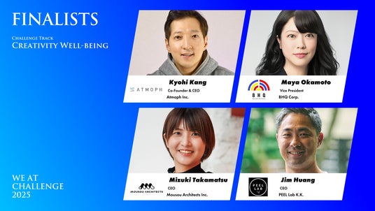 審査員は各トラックごとに各界を牽引するプロフェッショナルを迎え、すべてのファイナリストへ「WE AT AWARD」の贈呈と、各トラックの優勝者「WE AT BEST AWARD」受賞者の選定を行います。各トラック優勝者には、Track1~3にて各1,000万円、チャレンジトラックであるCreativity Well-beingには250万円の賞金を贈呈する予定です。