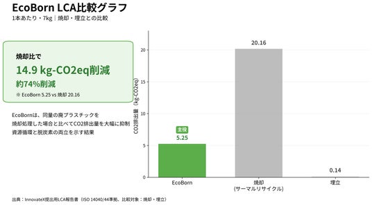 ■ 環境性能:1本あたり14.9kg-CO2eの削減効果を確認
