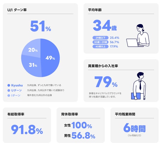 男女別管理職比率、UIターン比率などの数値データや、サステナビリティの取り組み、オフィス環境を伝える動画、グループ内における当社の役割、組織関係図、当社の沿革も新たに掲載いたしました。