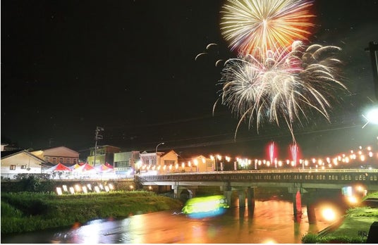 塙流灯火花火大会は、昭和5年から始まったとされる、板や紙等を用いて小さな灯篭を作り、火を灯して水上へ浮かべ先祖の精霊を送り出す行事です。