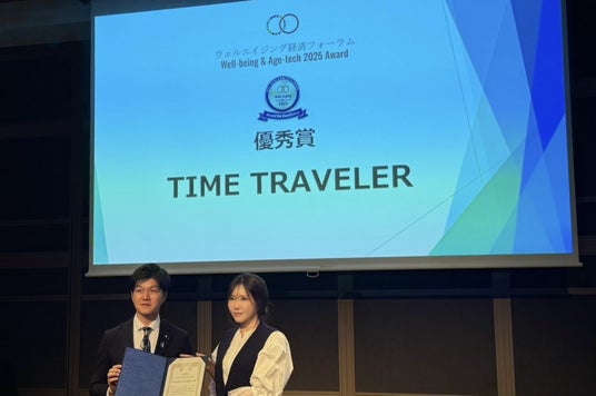 TIME TRAVELER株式会社(本社:文京区、代表取締役 Co-CEO:林寛敦・秋山りえ子、以下「当社」)は、2025年12月16日に虎ノ門ヒルズにて開催された、ウェルエイジング経済フォーラム主催「Well-being & Age-tech 2025 Award」 において、最上位である大臣賞に次ぐ評価として「優秀賞」を受賞いたしましたことをお知らせいたします。